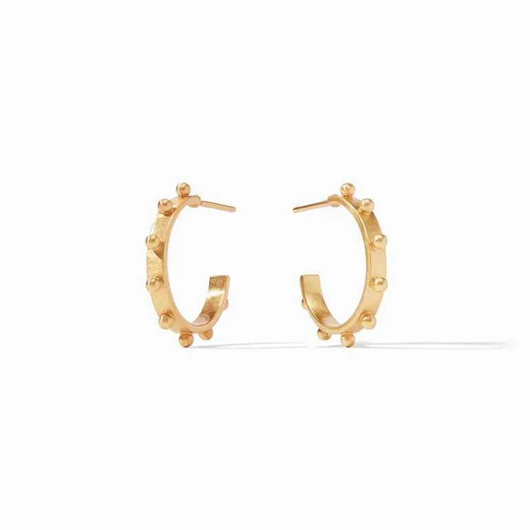 Studded gold beads decorate this hoop in mixed metal.
